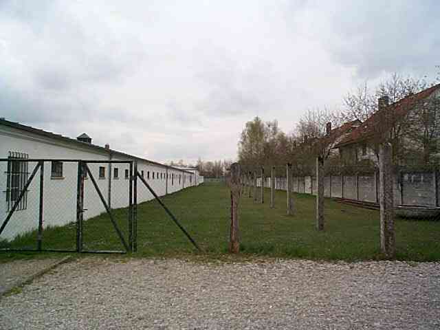 The left side building is the Bunker where many tortures and medical experiments took place. On the right is the fence line and you can see just how close the neighborhoods are to the camp.